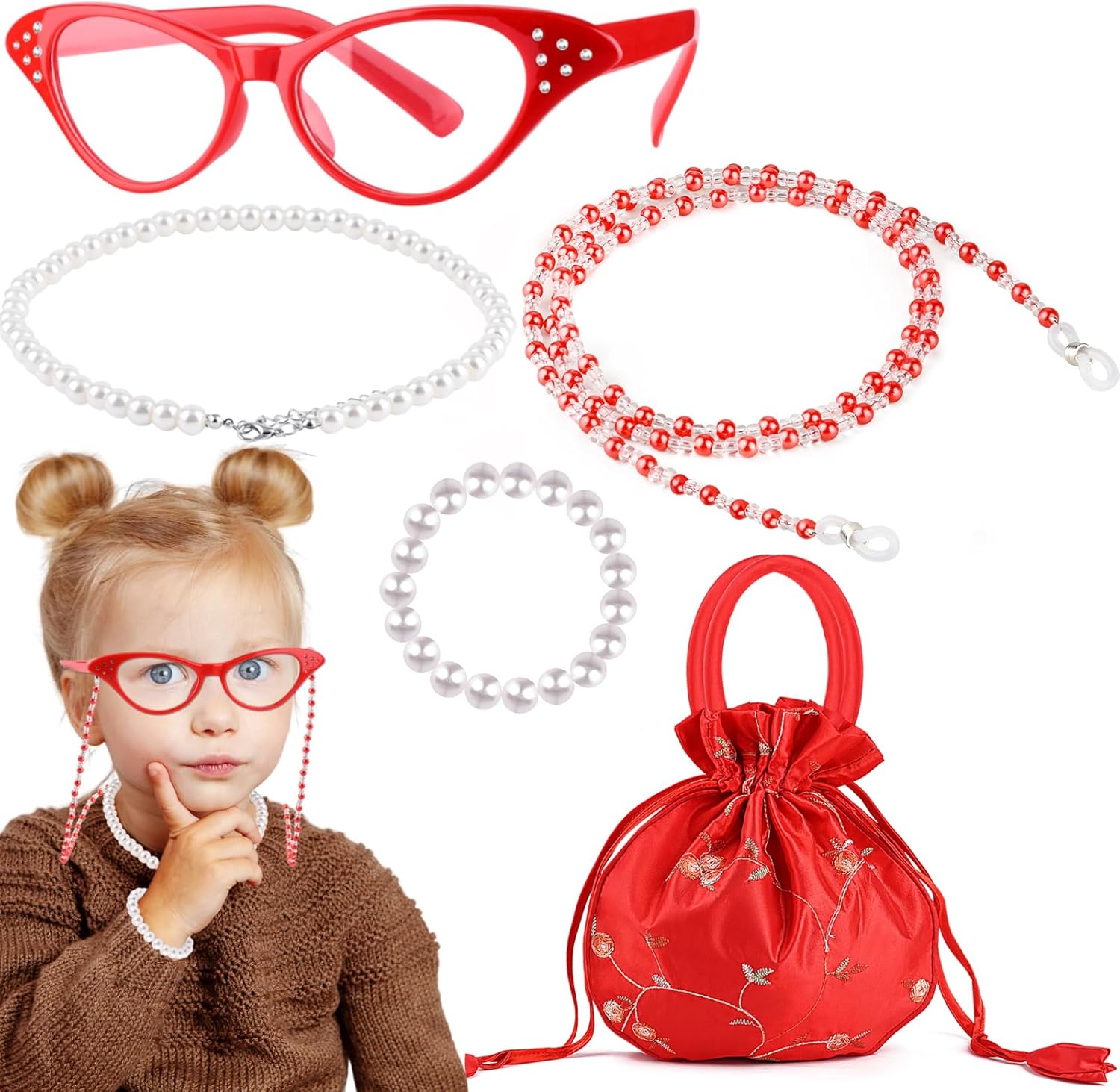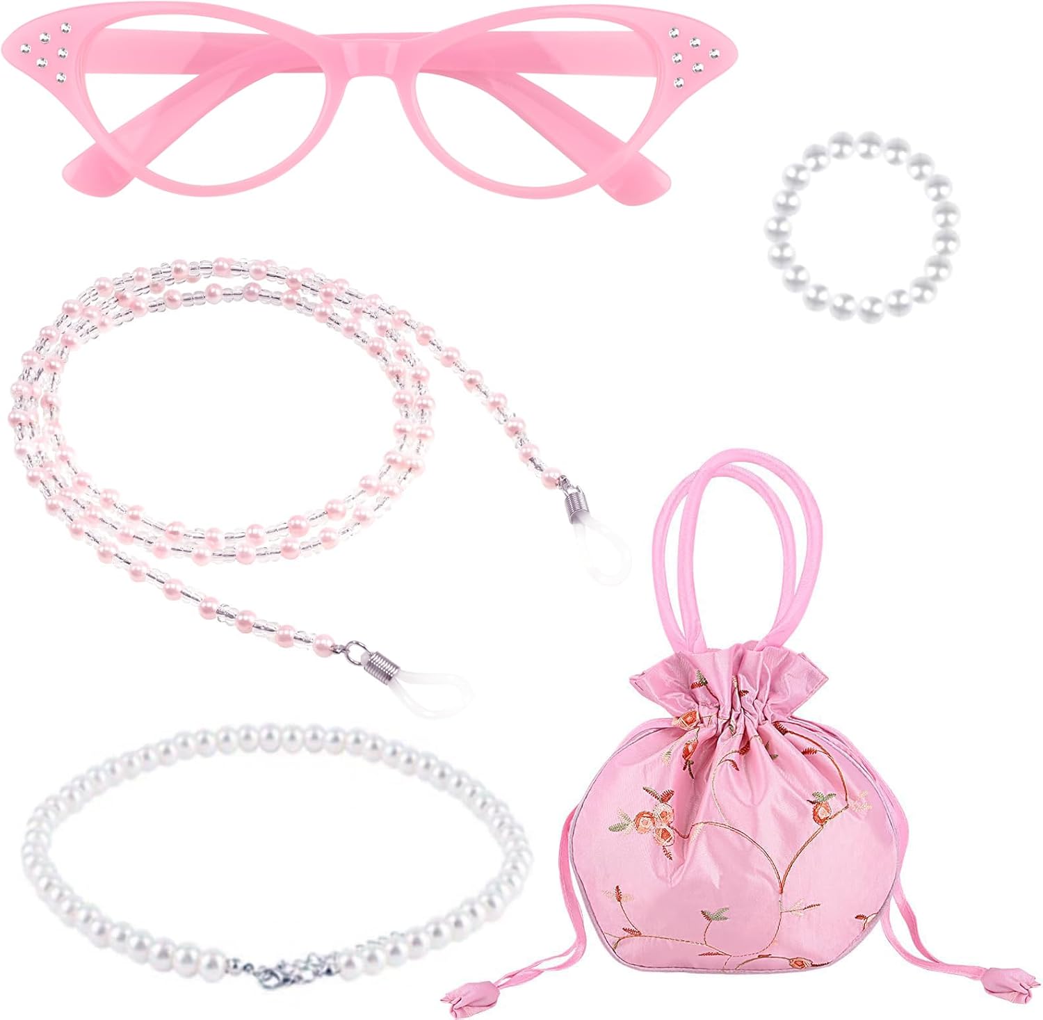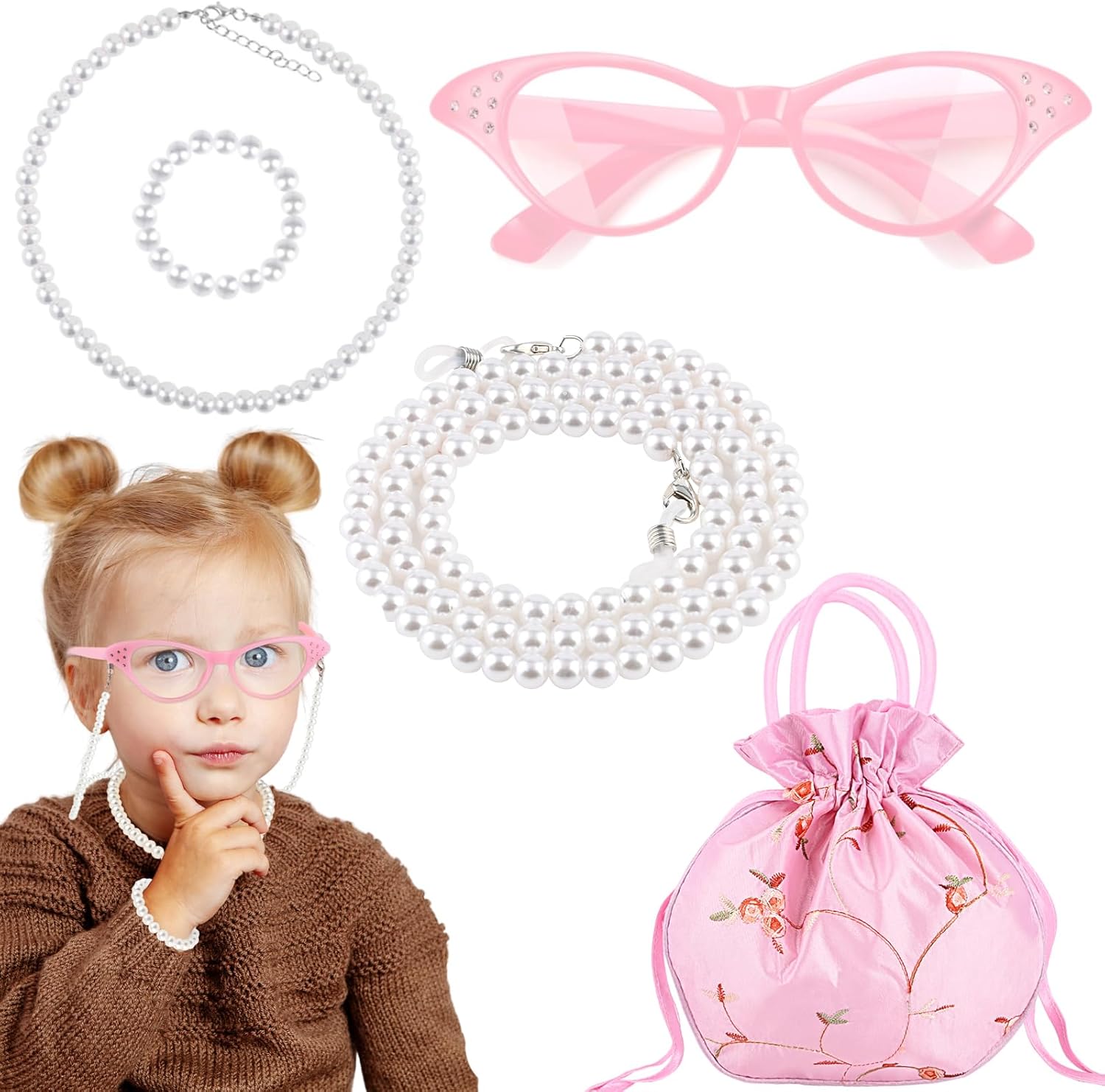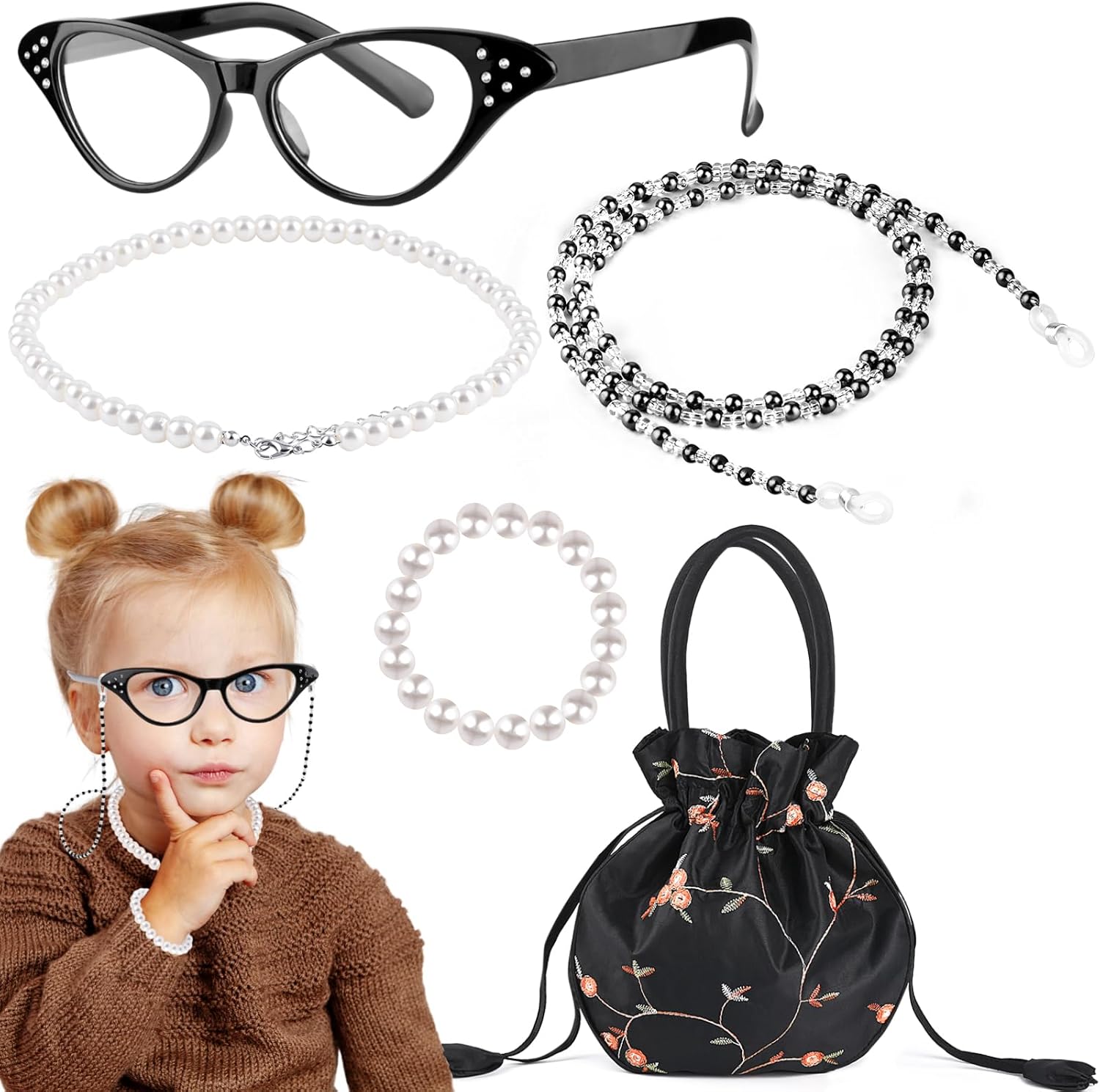 【Fabulous Old Lady Accessories】you will receive a pair of old lady glasses,1 piece of glasses chain,1 piece of artificial pearl necklace,1 piece of artificial pearl bracelet and 1 embroidered handbag,ideal combination for your old lady dress,you can dress up with your friends, it seem to be the age of grandmothers when you wear these cute granny costume accessories.
