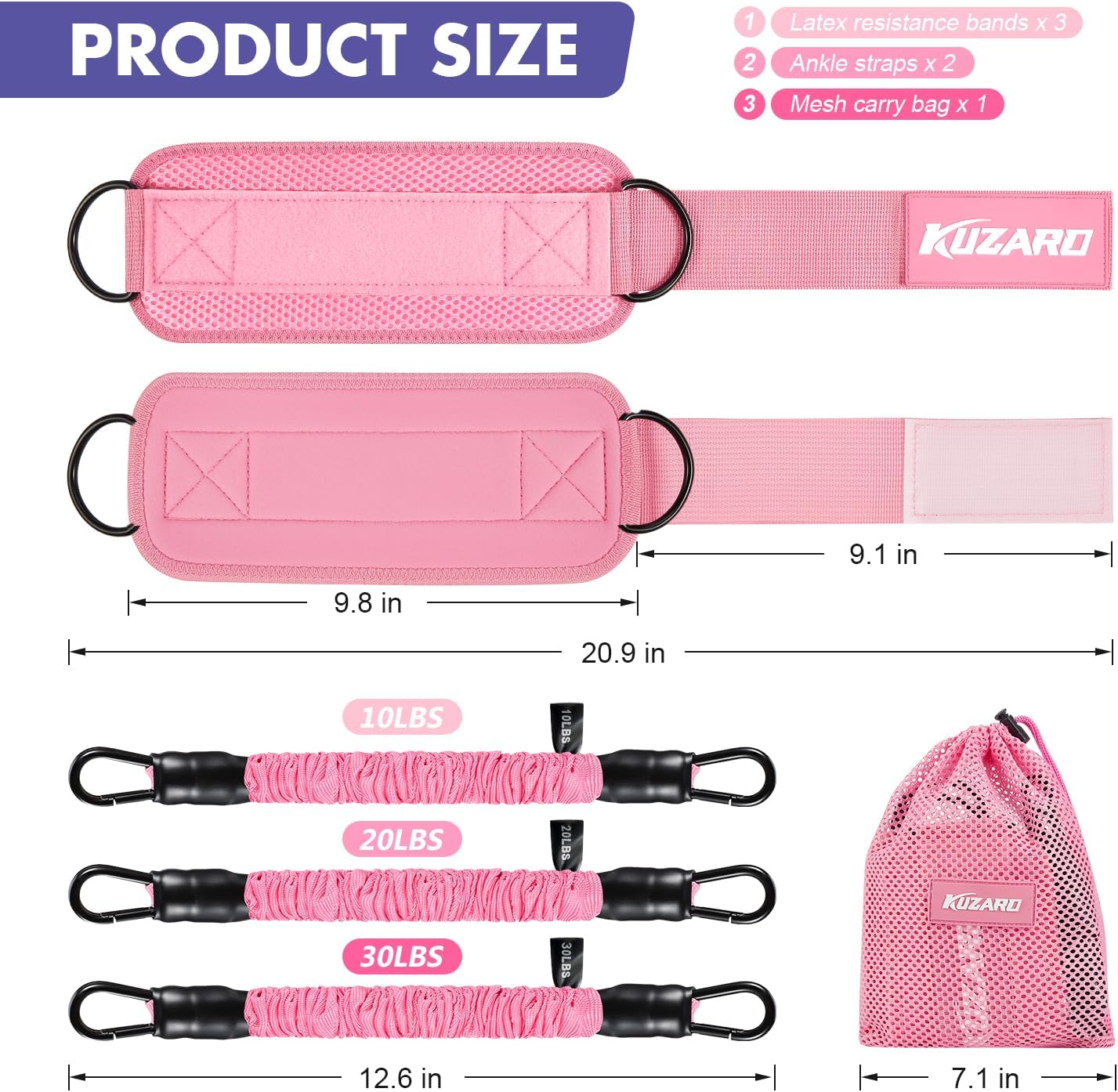 Introducing our versatile Ankle Resistance Bands with Cuffs! Experience the ultimate in customization with 3 adjustable resistance levels - 10 lbs, 20 lbs, and 30 lbs. Use each band individually or combine them for a maximum resistance of up to 60 lbs. Our high-quality natural rubber construction ensures durability and elasticity, perfect for targeting your legs, buttocks, and hips. Compact and lightweight, these bands are portable and easy to use, making them ideal for home, gym, or travel workouts. Whether you're aiming for a bikini booty or ripped abs, our ankle bands will help you achieve your fitness goals. Elevate your workouts and get ready to turn heads at your next pool party!