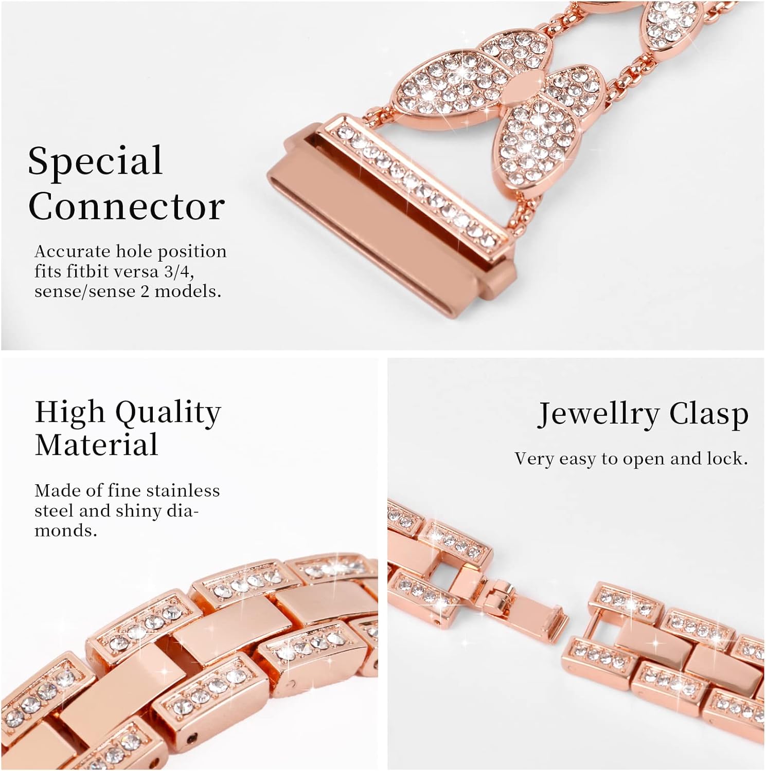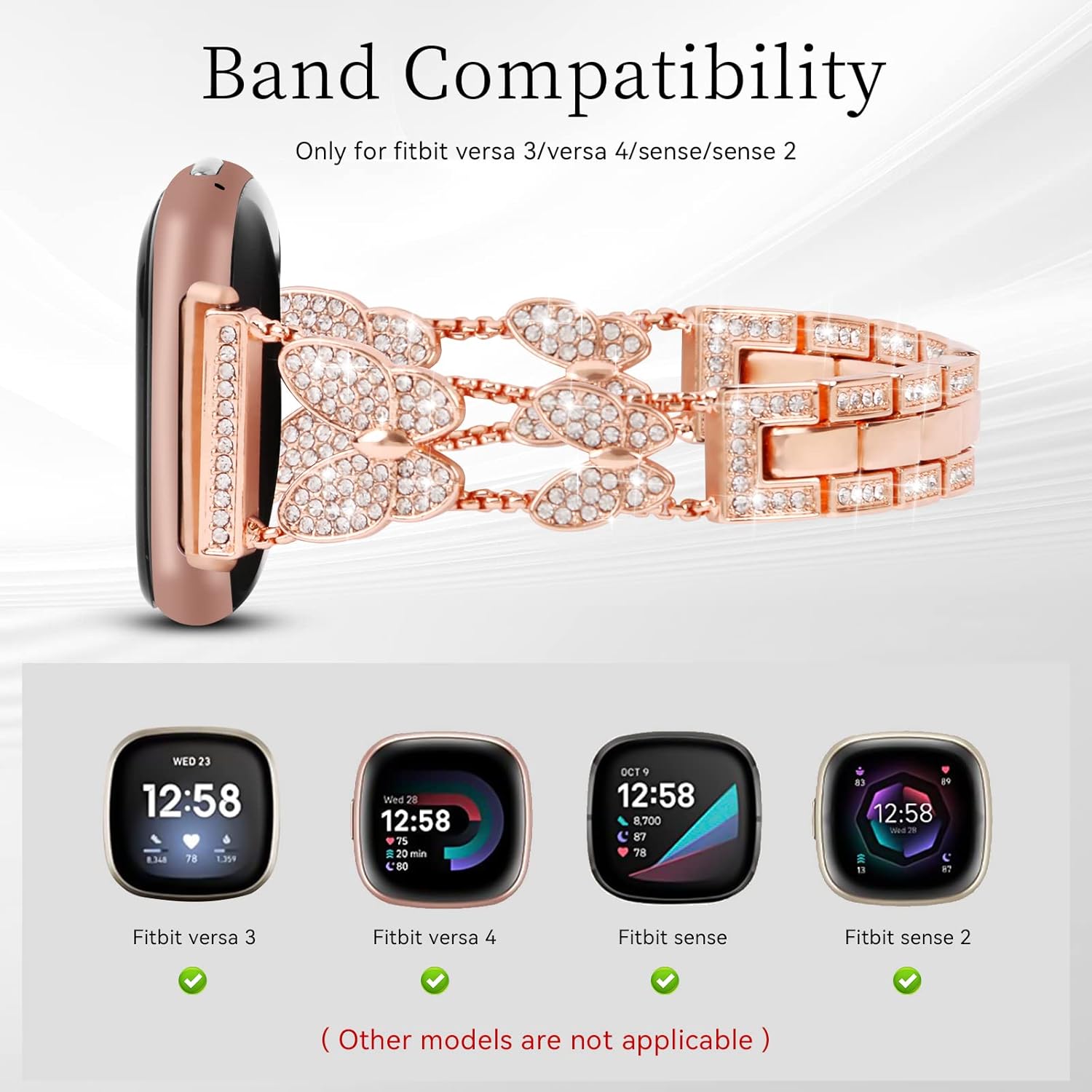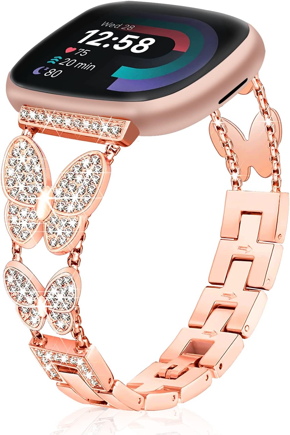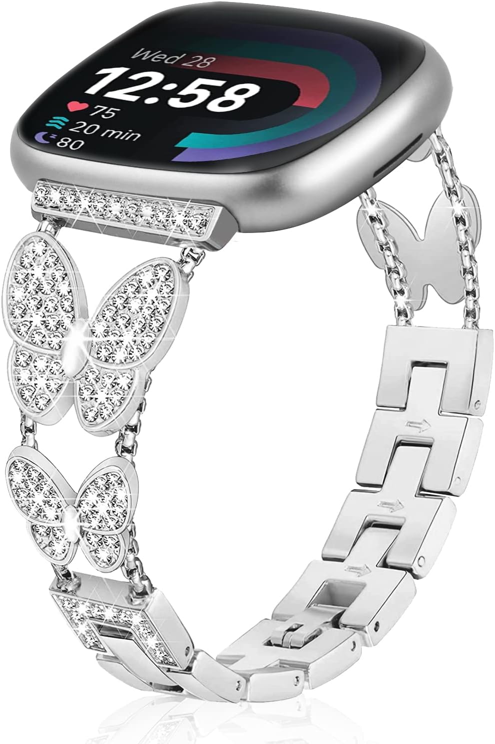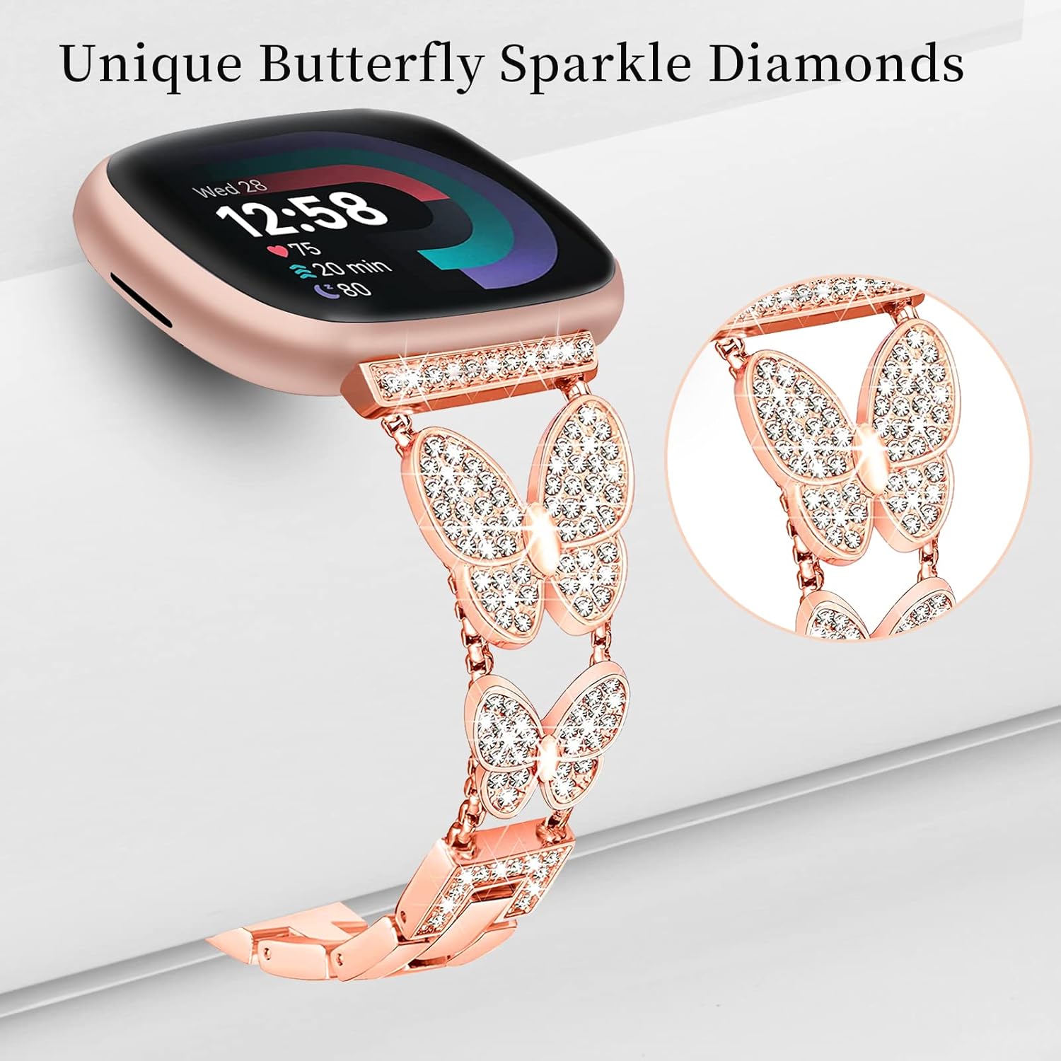 Bling Bands Compatible for Fitbit Versa 4/3, Fitbit Sense 2/Sense, Butterfly Jewelry Diamond Rhinestone Metal Cute Bracelet, Sparkle Luxury Dressy Strap for Women