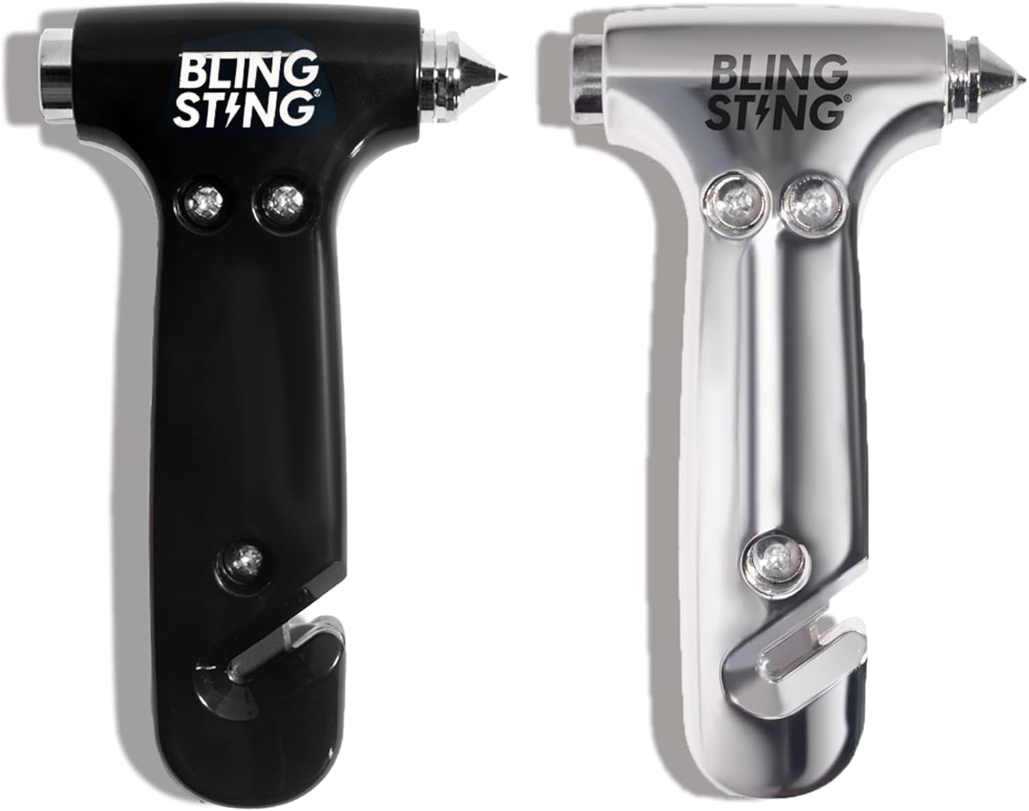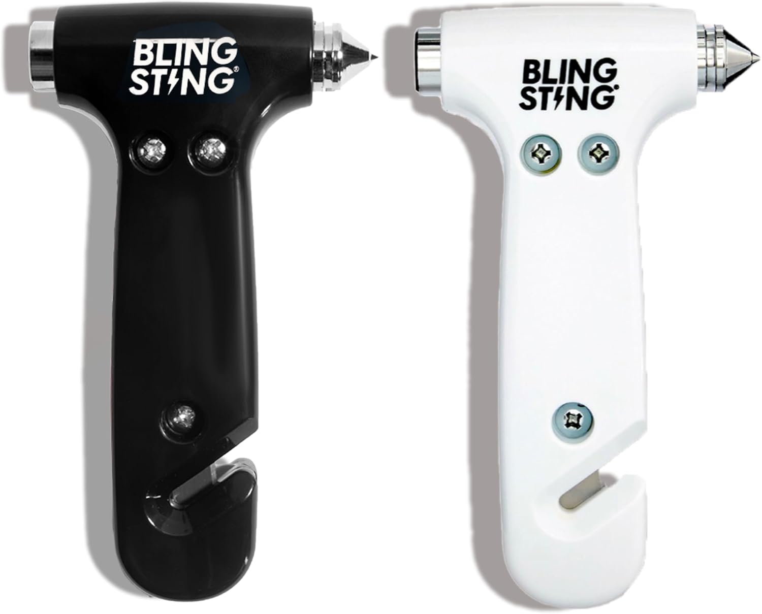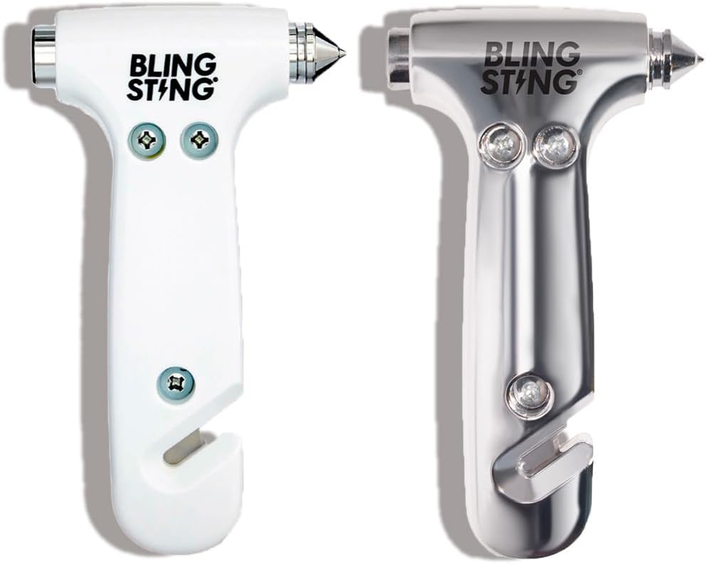 BLINGSTING Car Emergency Escape Hammer, Seatbelt Cutter, Window Breaker Tool, Interior Visor Strap, New Driver Vehicle Safety Essentials, Cute Car Accessories for Women - Black & Silver, 2 Count