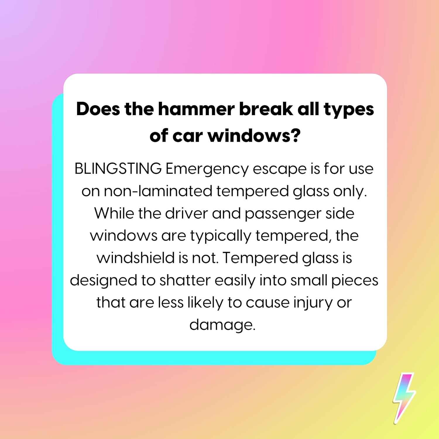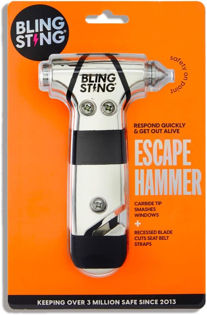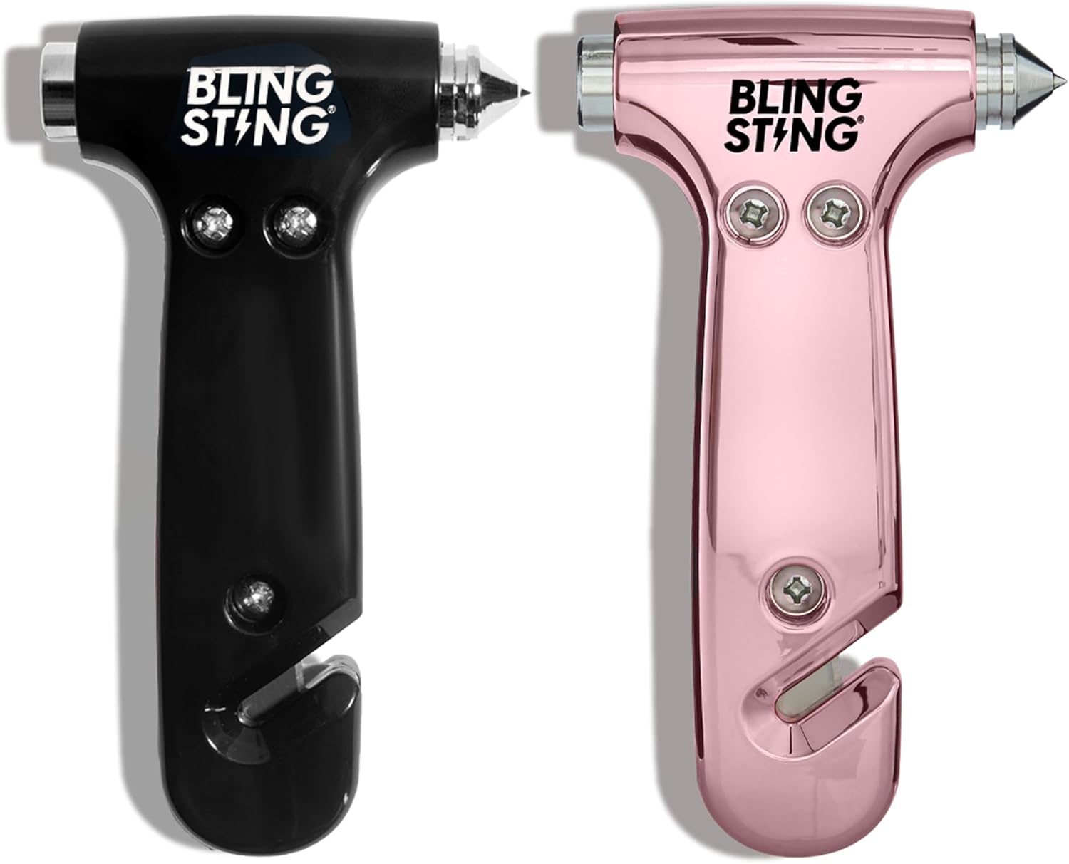 BLINGSTING Car Emergency Escape Hammer, Seatbelt Cutter, Window Breaker Tool, Interior Visor Strap, New Driver Vehicle Safety Essentials, Cute Car Accessories for Women - Black & Silver, 2 Count