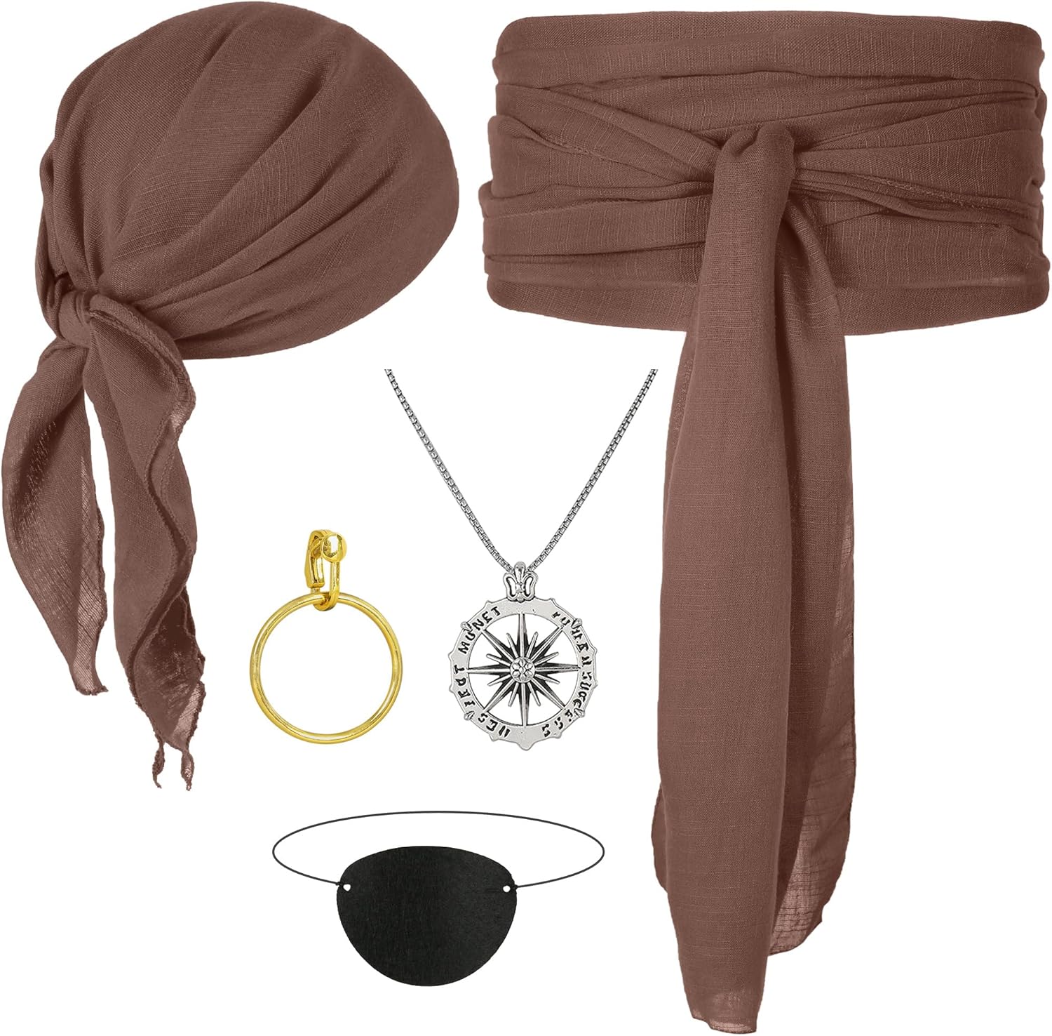 CICOCI Men Pirate Costume Accessories Set for Women Pirate Hat Pirate Head Scarf Pirate Sash Belt Dress Accessories