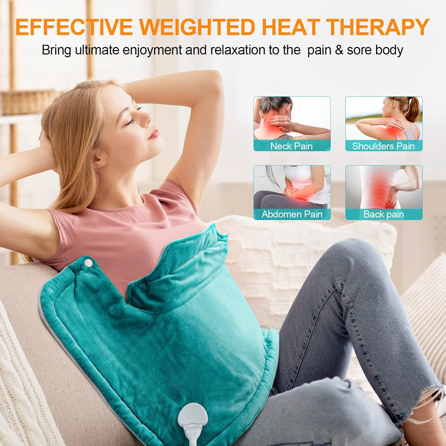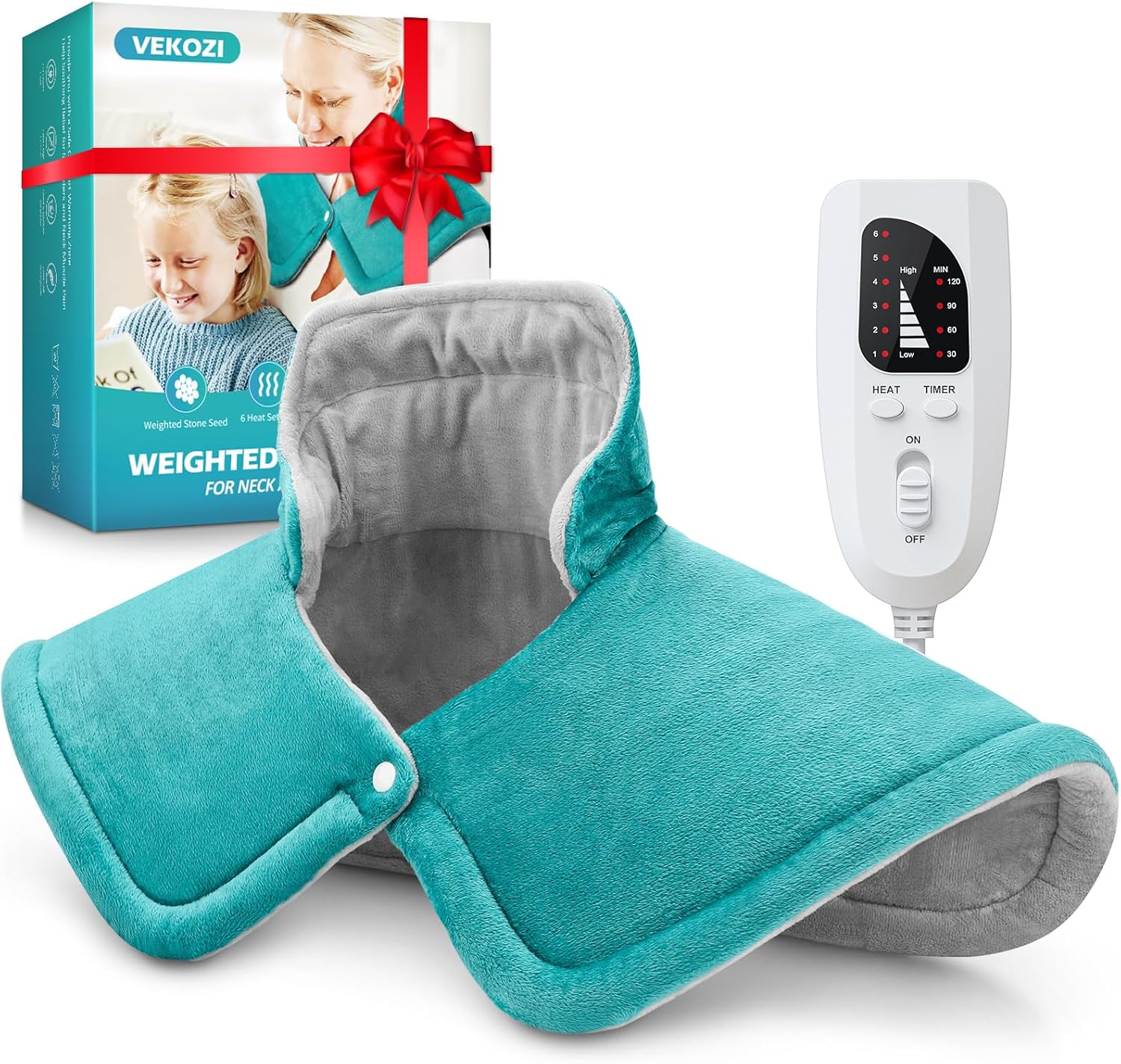 Heating Pad for Neck and Shoulders and Back, Valentines Day Gifts for Her Him, Birthday Gifts for Women Mom Mother, Weighted Neck and Shoulder Heating Pads, 6 Heat Settings 4 Auto-Off,17"x23" Blue