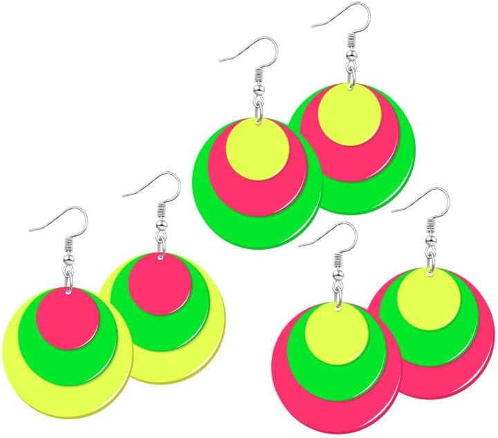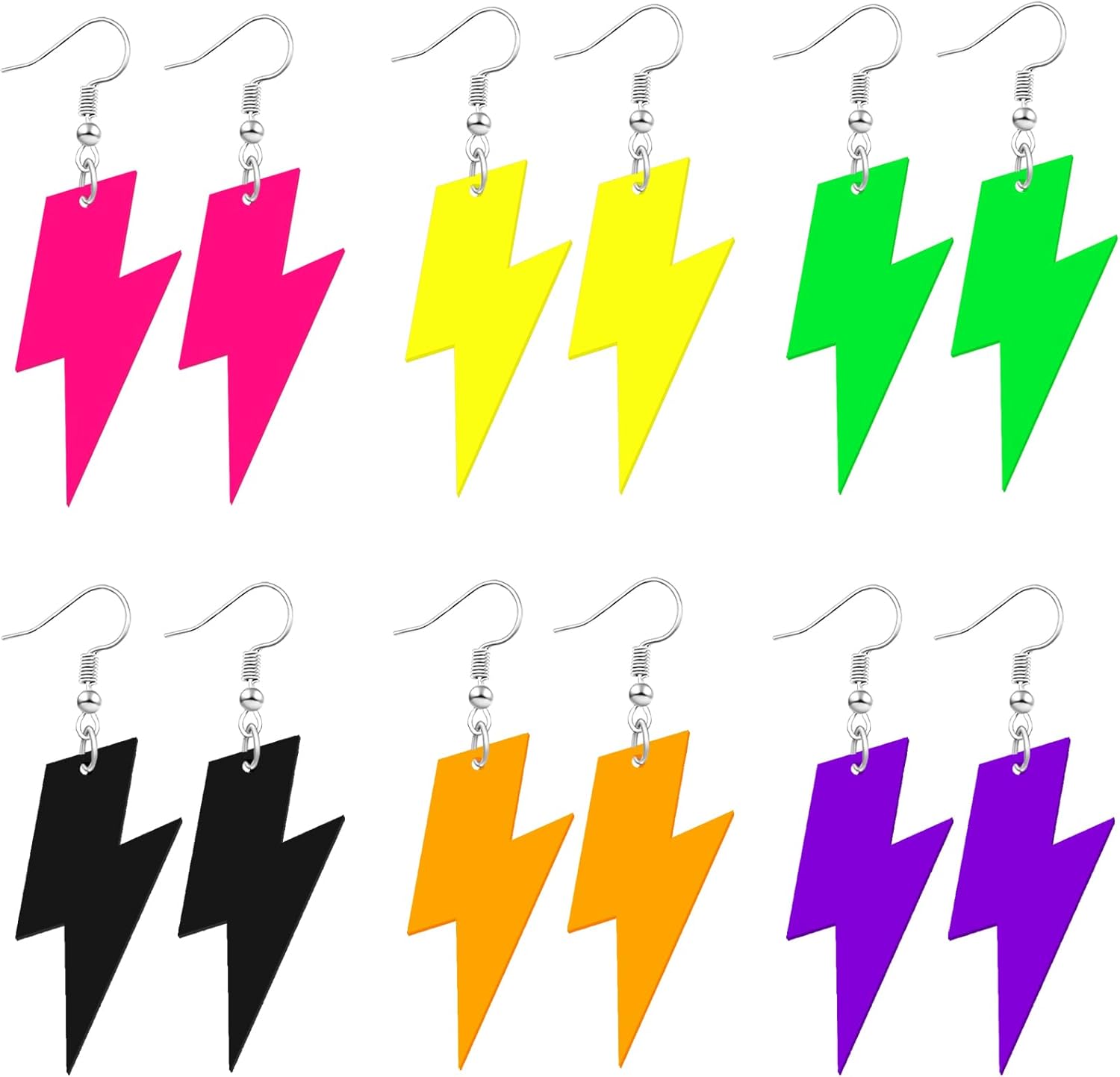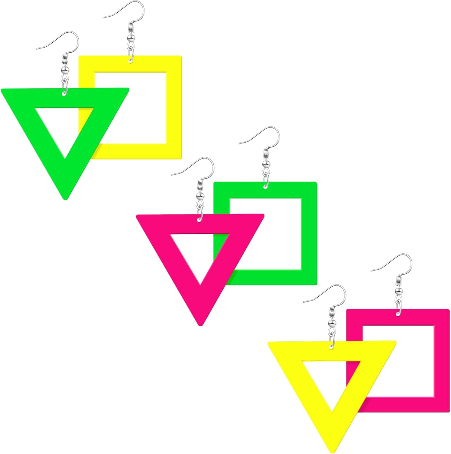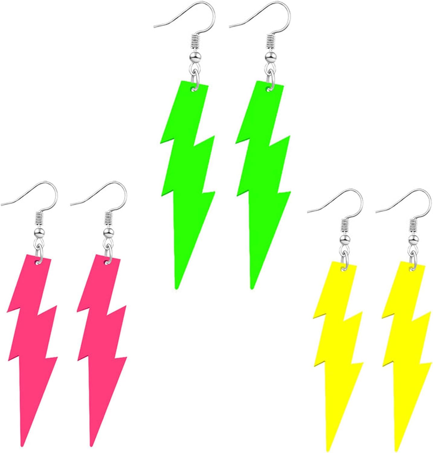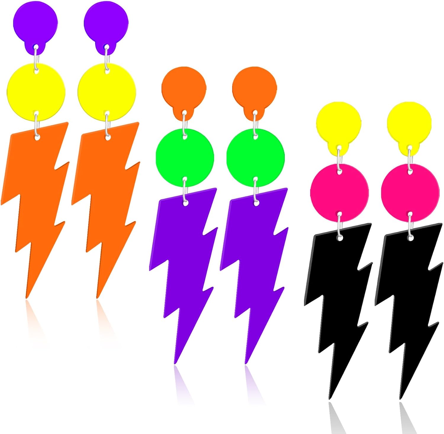 Ronglry 3Pairs 80s Neon Earrings for Women Colorful Lightning Acrylic Drop Earrings Retro Geometric Dangle Earrings Neon Earrings Bulk for 80's Outfit Glow Party Halloween Neon Accessories 80s Jewelry
