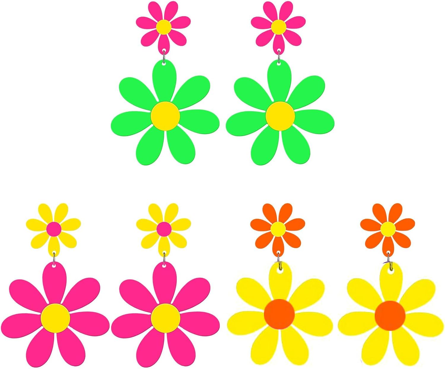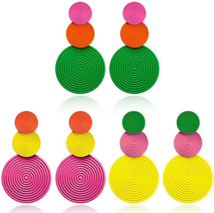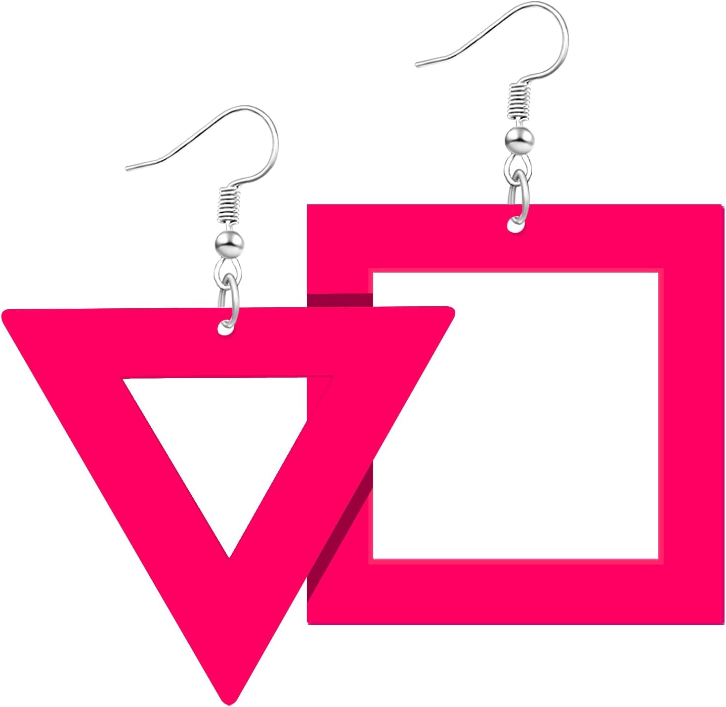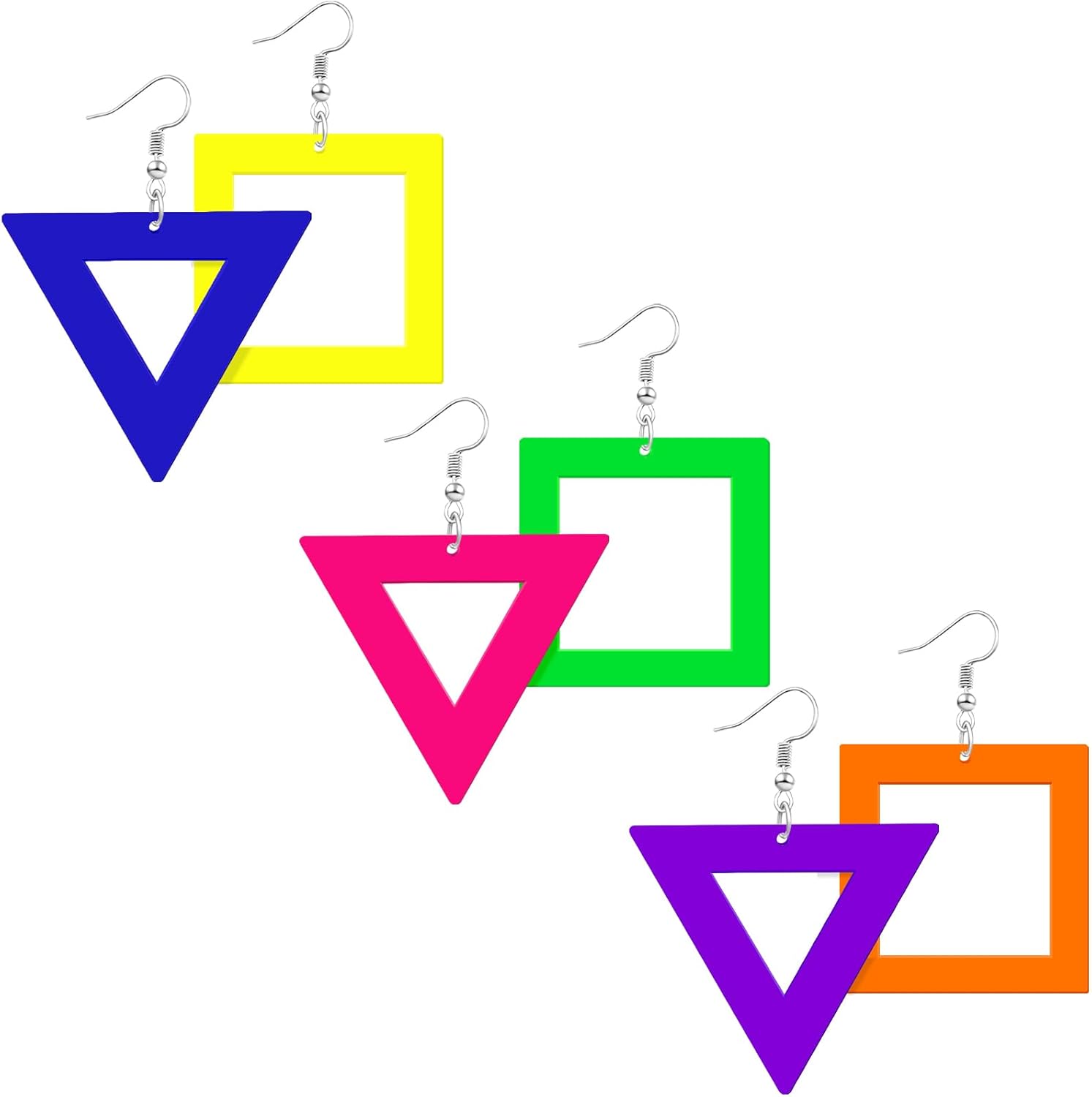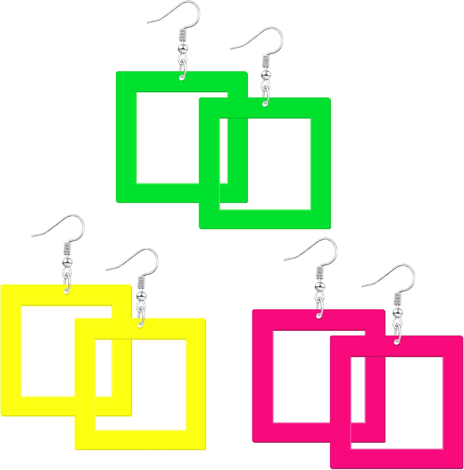 Ronglry 3Pairs 80s Neon Earrings for Women Colorful Lightning Acrylic Drop Earrings Retro Geometric Dangle Earrings Neon Earrings Bulk for 80's Outfit Glow Party Halloween Neon Accessories 80s Jewelry
