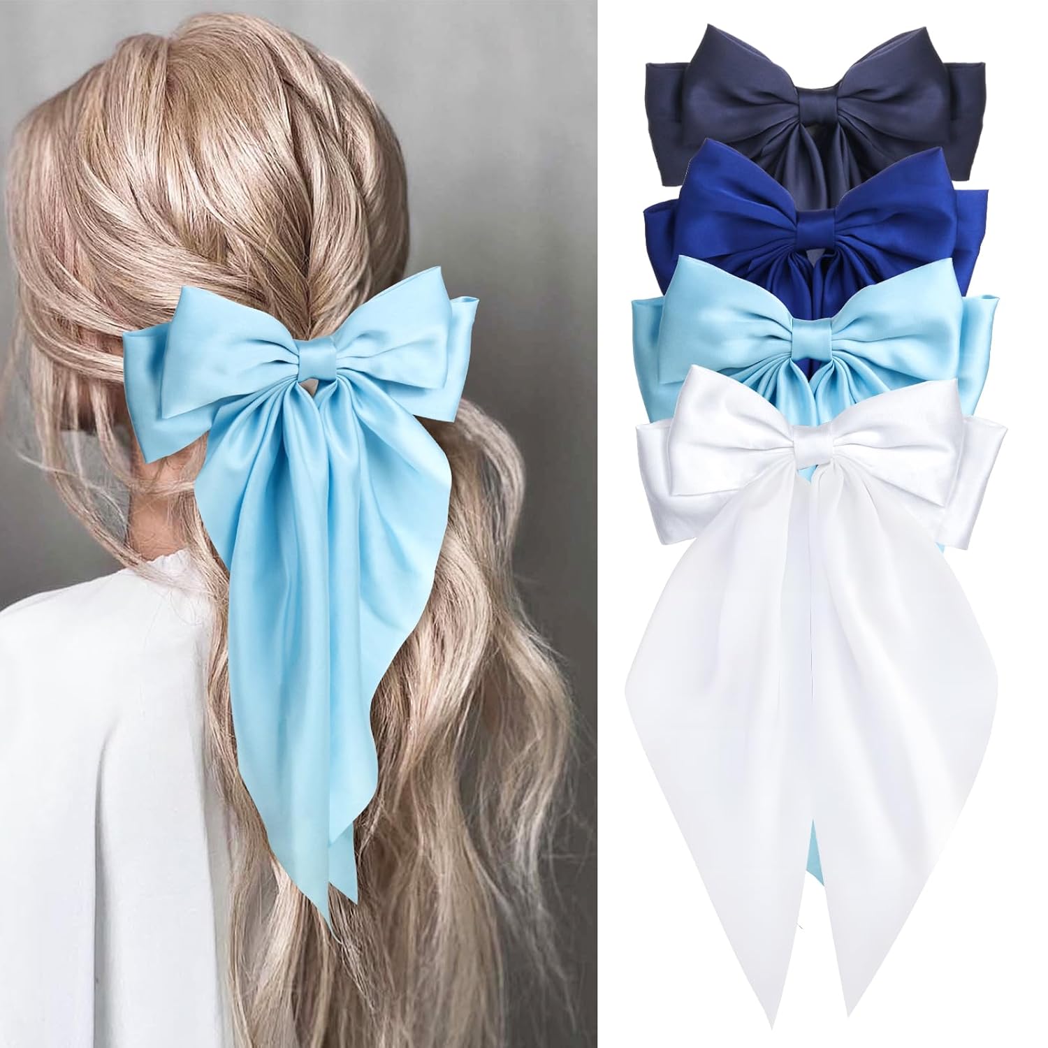 This 4PCS hair bow set in 4 colors is perfect for both women and girls. Made from premium satin, these bows offer a smooth, shiny finish and a secure hold with thickened metal clips. The long bow design adds sophistication to any hairstyle, ideal for all hair types. A stylish gift for any occasion!