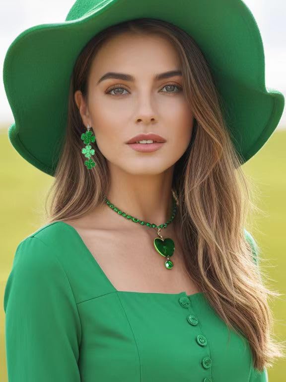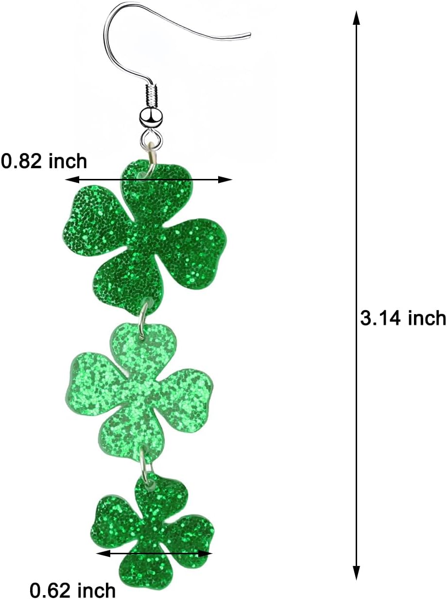 St. Patrick's Day Green Leaf Earrings for Women,Clover Horseshoe Drop Earrings for Irish Festival Gift,Irish Shamrock Dangle Earrings