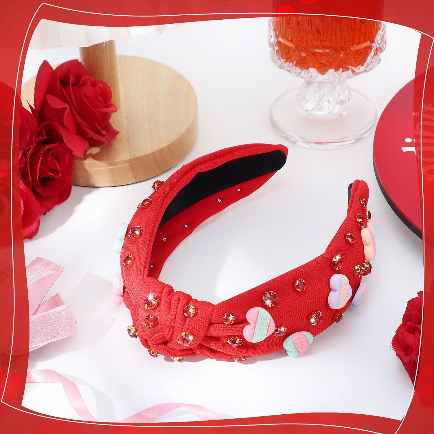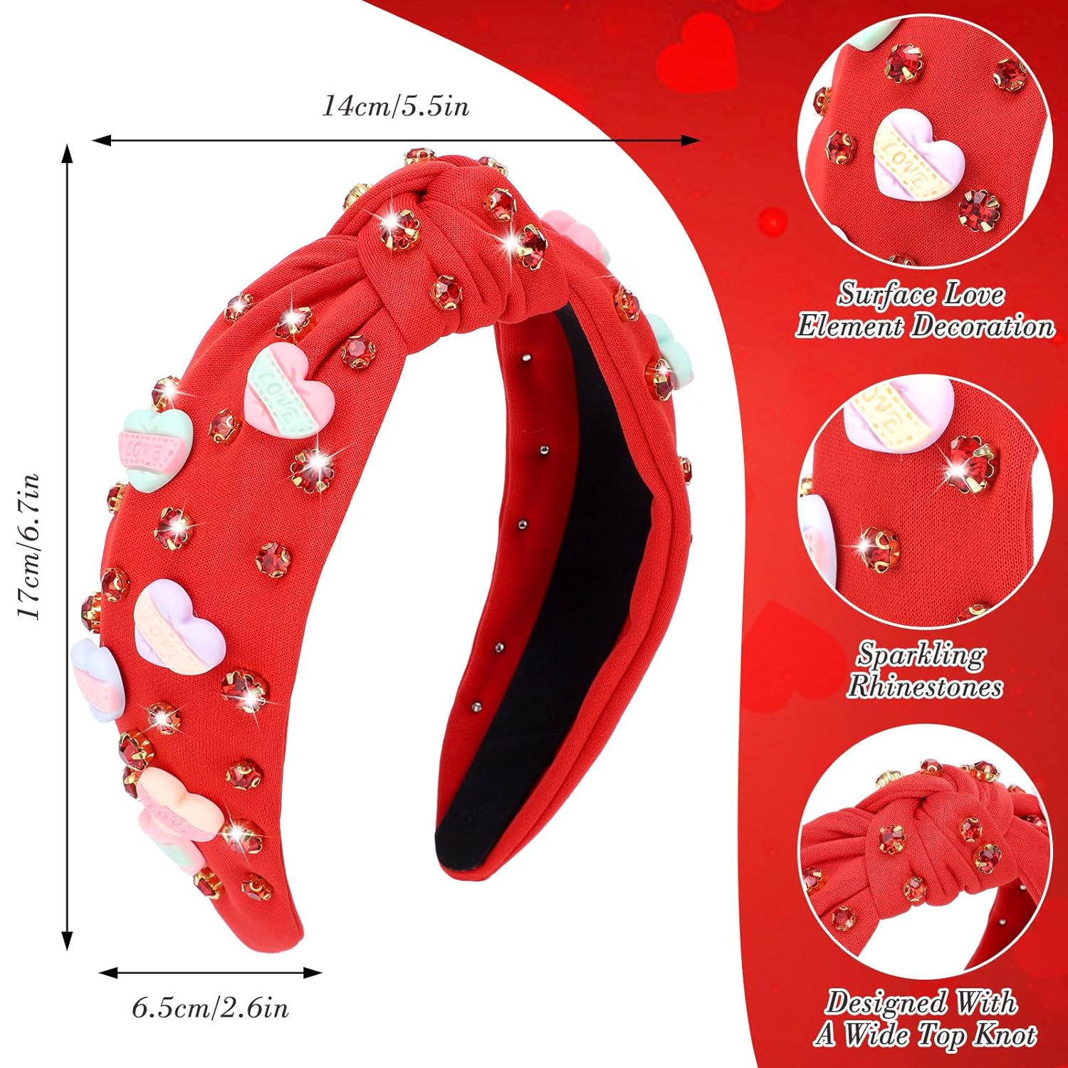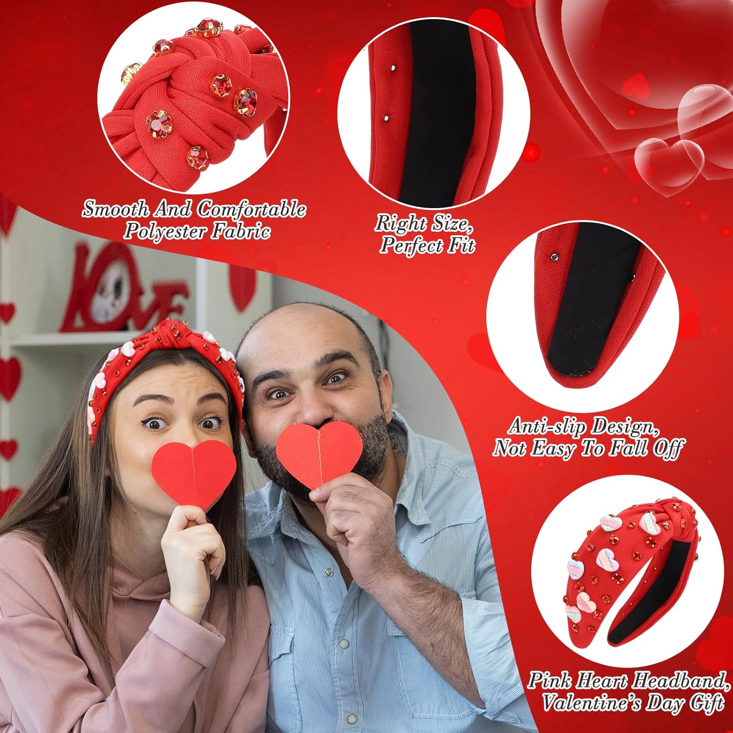 Valentine's Day Headband for Women, Red Heart Knotted Headband with Crystal Hearts Decorations Valentine's Day Gifts Holiday Headband Accessories