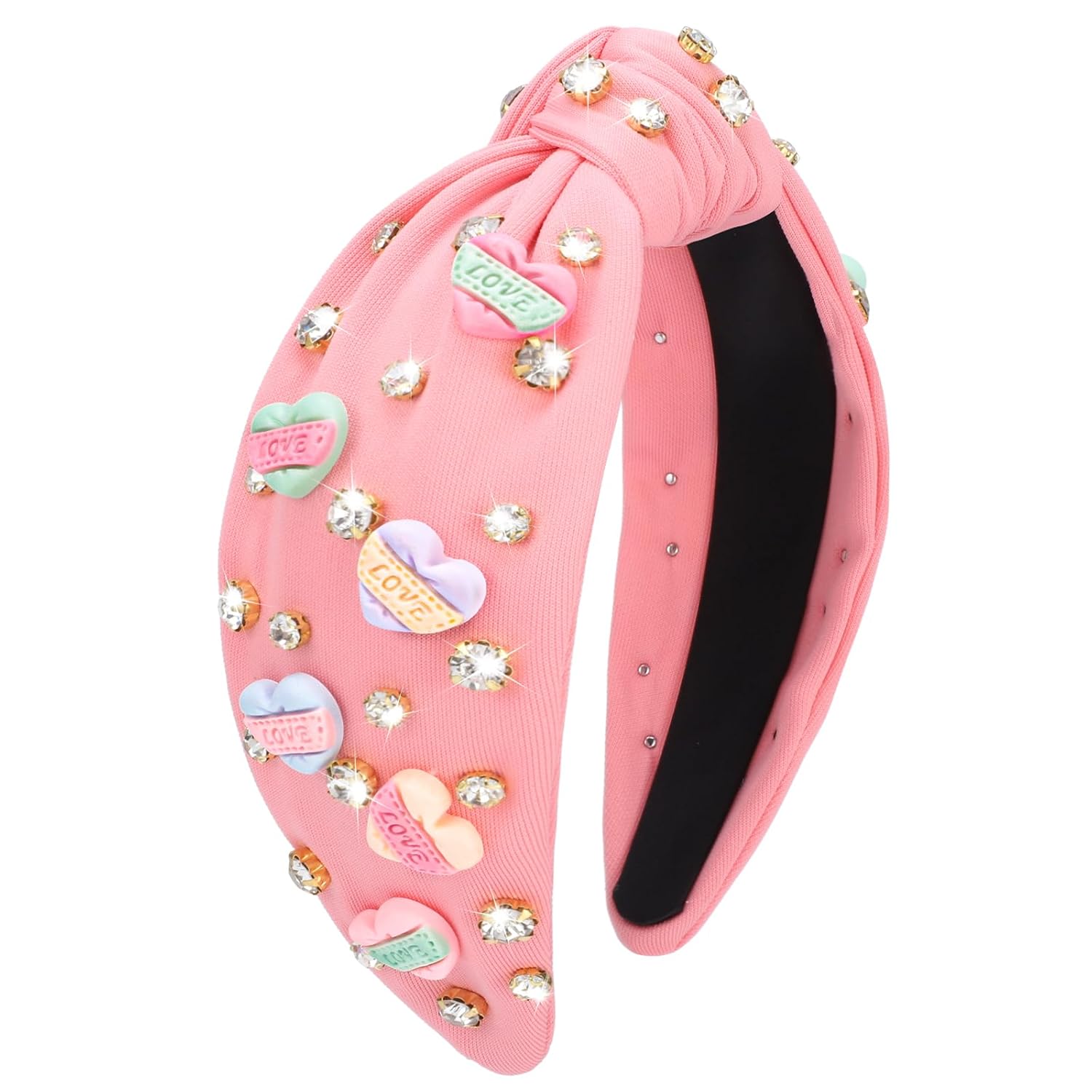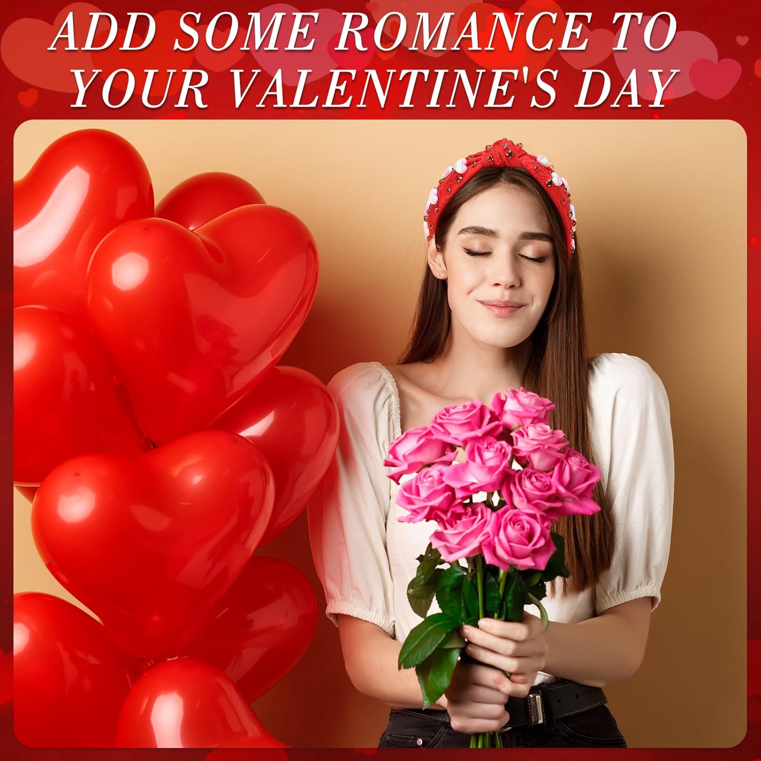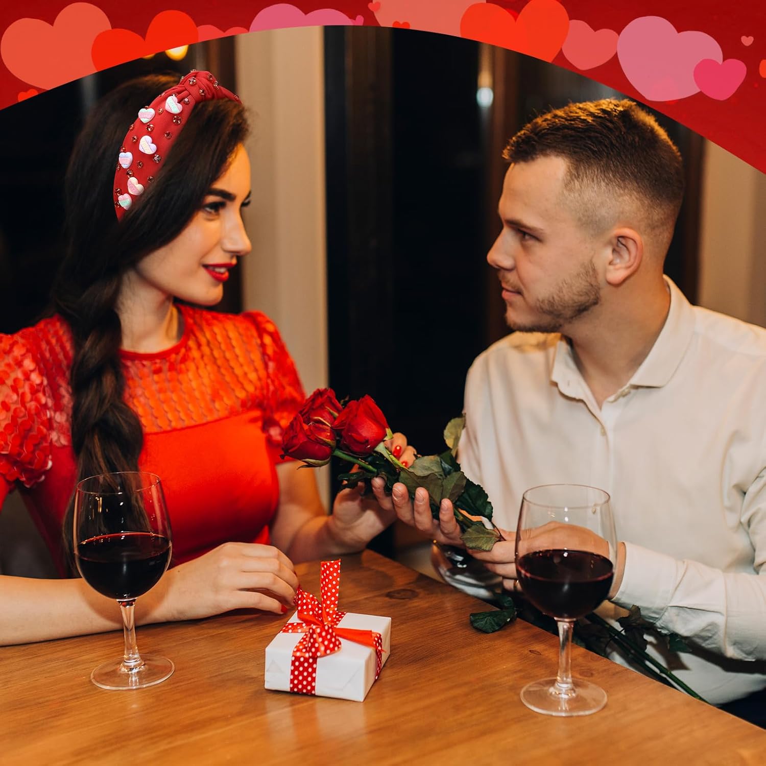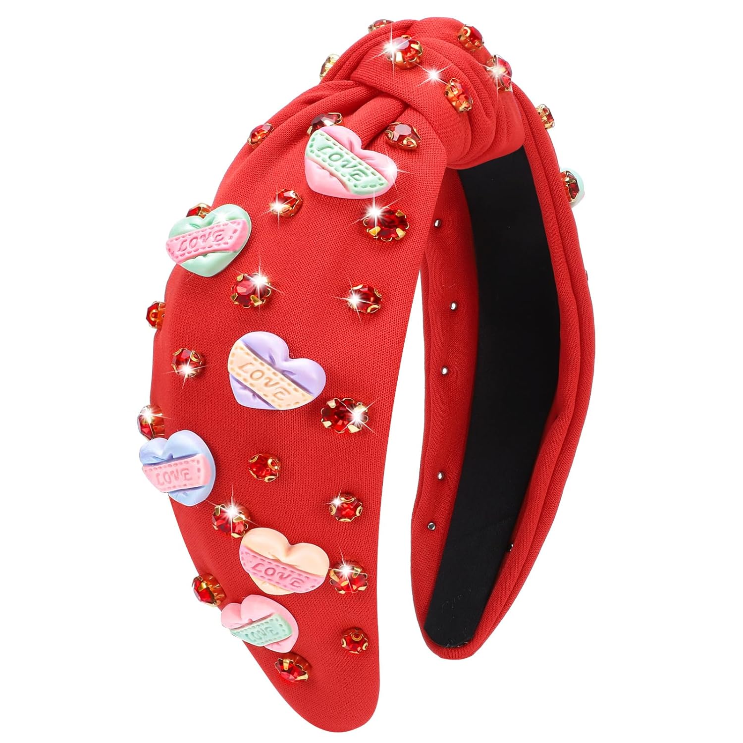 Valentine's Day Headband for Women, Red Heart Knotted Headband with Crystal Hearts Decorations Valentine's Day Gifts Holiday Headband Accessories